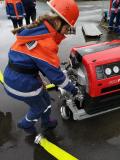 Zum Schluss folgte Disziplin fünf. Die Jugendlichen starteten zunächst liegend auf einer Trage, bei der sie sich mit Helm, Gurt und Handschuhen einkleiden mussten. Anschließend machten sie die Tragkraftspritze einsatzbereit. Ziel war es, Wasser mit einem Pumpenausgangsdruck von fünf Bar zu fördern.
