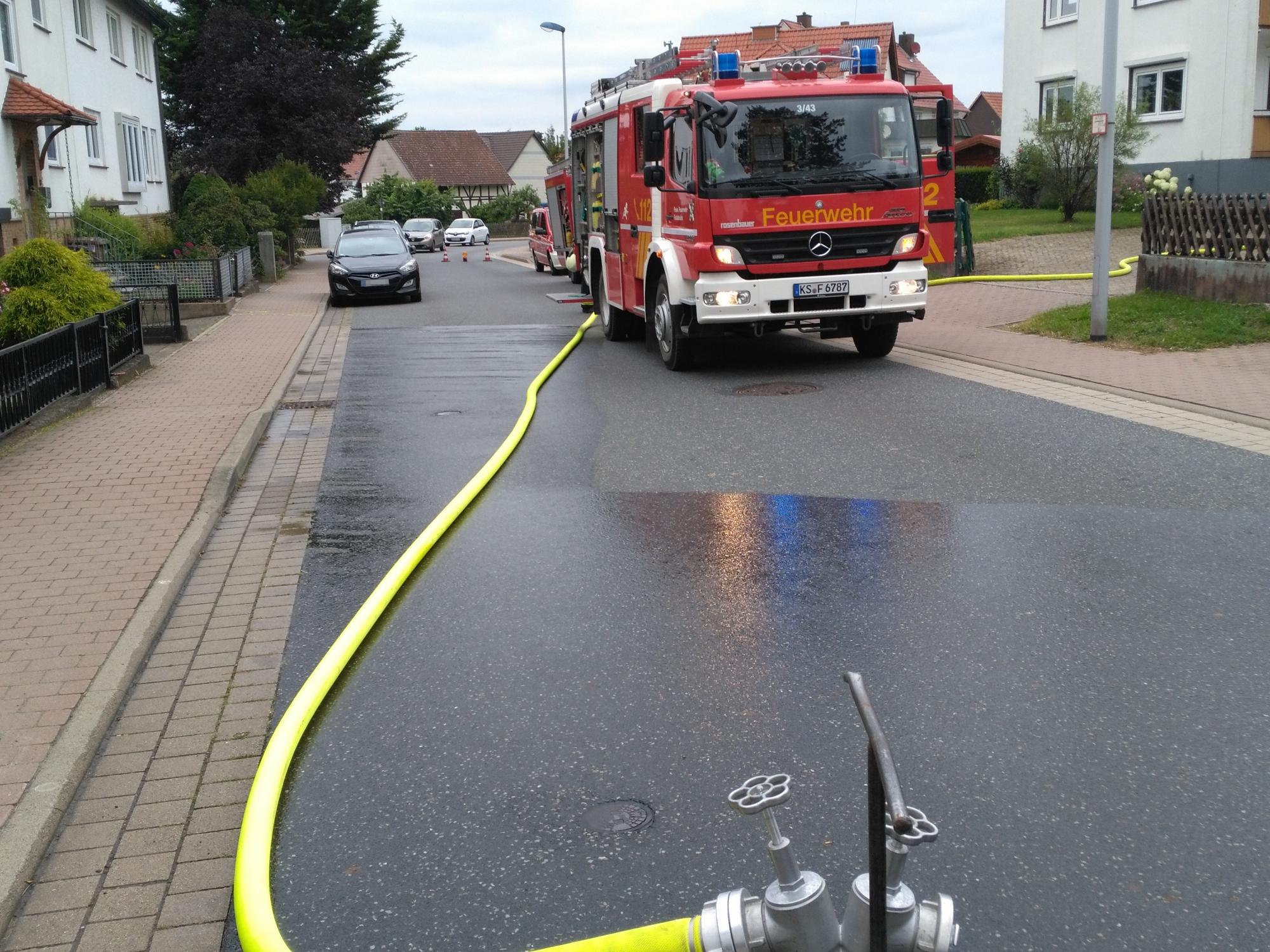 Am frühen Mittwochnachmittag wurde die Feuerwehr Fuldabrück zu einer unbekannten Rauchentwicklung gerufen. Anlieger und vorbeifahrende Fahrzeuge bemerkten eine große Rauchwolke, die aus einem Garten aufstiegt und wählten den Notruf. Bei Ankunft der Einsatzkräfte stellte sich heraus das eine Hecke in Vollbrand stand. Schnell war der Brand mittels Hohlstrahlrohr unter Kontrolle. Die Hecke grenzte an eine überdachte Terrasse, weshalb auch hier die Dachhaut abgekühlt werden musste. Eine weitere Ausbreitung des Brandes auf nahe liegende Sträucher oder die überdachte Terrasse konnte verhindert werden. Es kamen keine Personen zu Schaden. Nach rund einer Dreiviertelstunde konnten die Einsatzkräfte wieder einrücken.