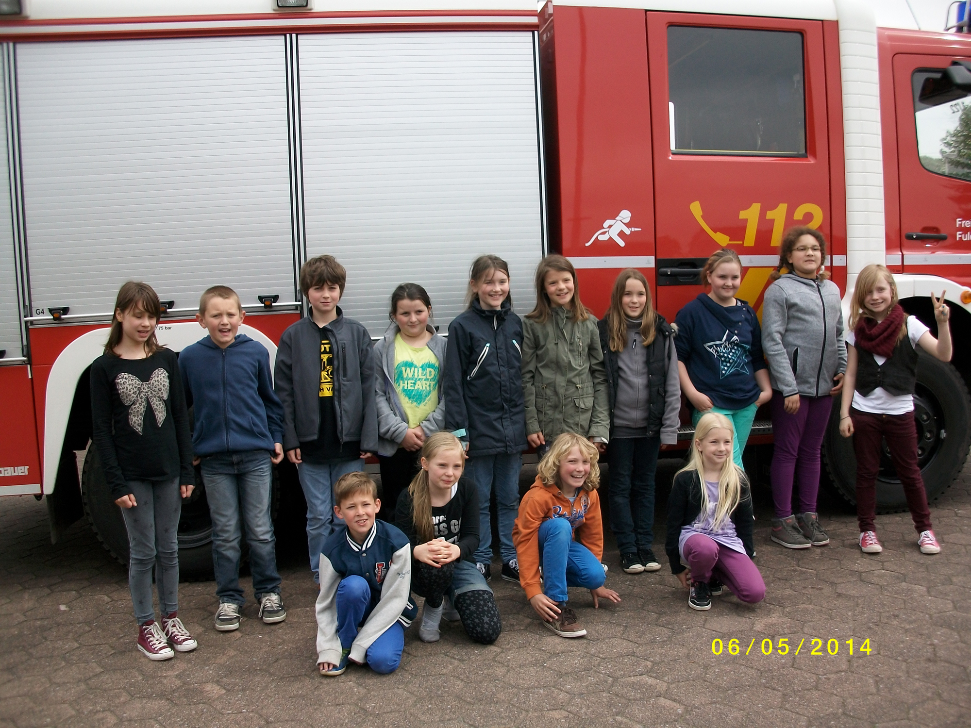Erneut fand am 6.05.14 ein Aktionstag für die Klasse 4 der Grundschule Bergshausen statt. Insgesamt 6 Kameradinnen und Kameraden der Feuerwehr Fuldabrück nahmen sich den Vormittag Zeit, um den Kindern einen Einblick in die Arbeit der Feuerwehr zu geben.