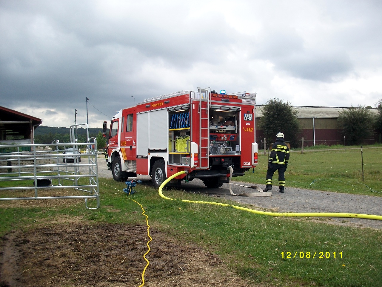 Um 13.05 Uhr wurde die Feuerwehr Fuldabrück erneut auf den Reiterhof am Gut Freienhagen gerufen. Dort brannte, wie bereits am Vortag, ein Misthaufen.